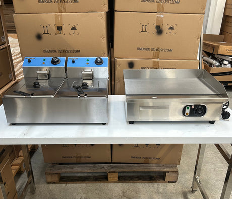 Cheftek 73cm Electric Griddle - Flat & Groved Plate