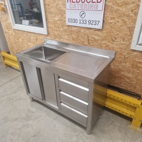 Commercial Single Bowl Sink Cupboard With Drawers (Left) - 1200mm