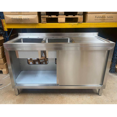Double Bowl Sink Cupboard - 1500mm - Right Hand Drainer