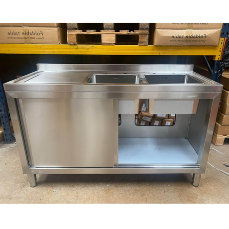 Commercial Single Bowl Sink Cupboard With Drawers (Right) - 1200mm