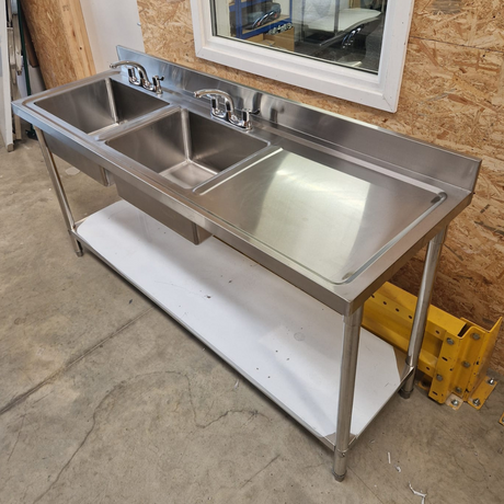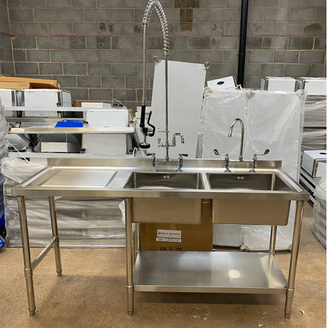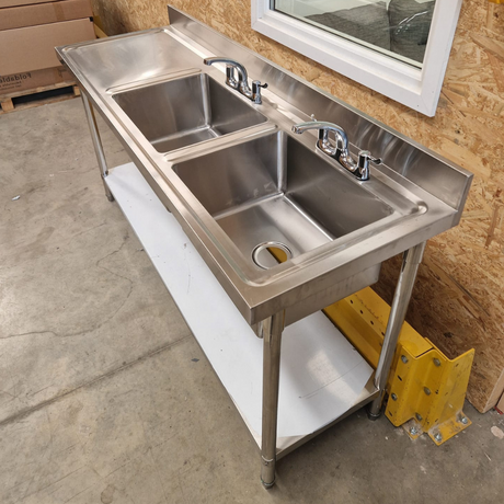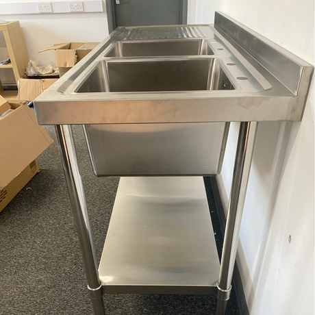 Double Bowl Commercial Sink For Dishwasher- 1800x650x900mm Left Hand Drainer