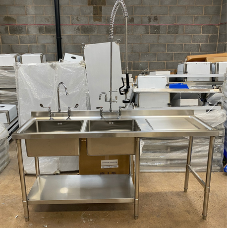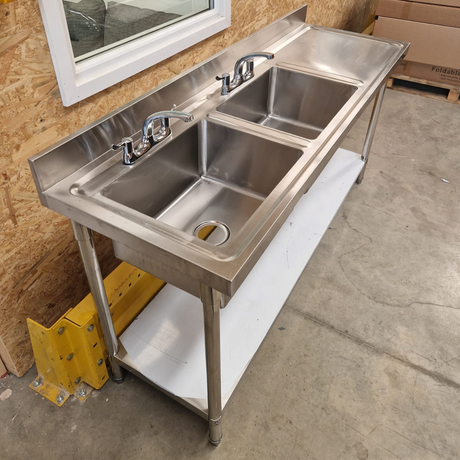 Double Bowl Commercial Sink For Dishwasher- 1800x650x900mm Right Hand Drainer