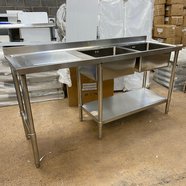 Double Bowl Commercial Sink For Dishwasher- 1800x650x900mm Left Hand Drainer