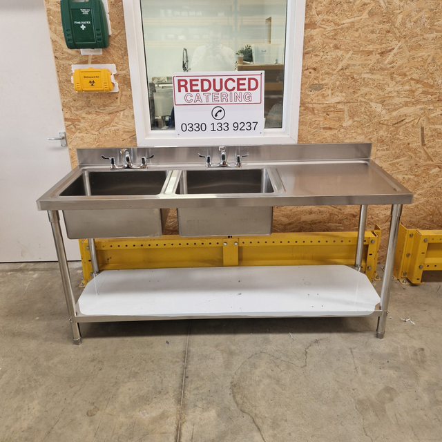 Double Bowl Sink 1800mm - Left Hand Bowl - Flat Draining Board